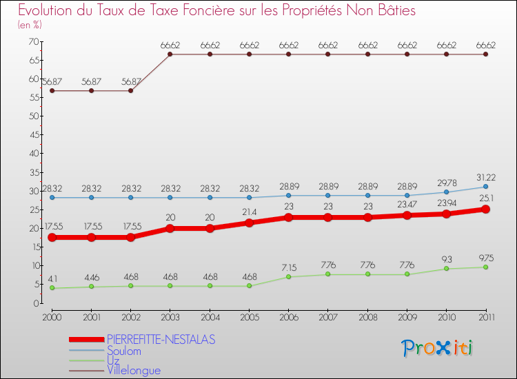 A Pierrefitte-Nestalas, le taux de taxe foncière sur le non bâti a donc augmenté de 43.02 % entre 2000 et 2011.