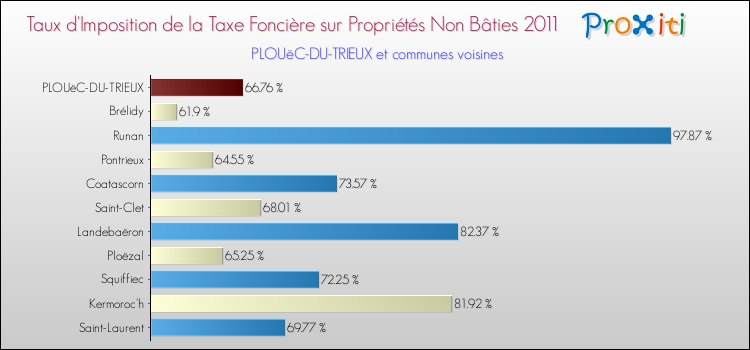 En 2011, le taux de la taxe foncière sur le non bâti vôté par le conseil municipal de Plouëc-du-Trieux était de : 66.76 %.