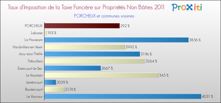Vous trouverez ci-dessous des graphiques qui vous permettent de situer le taux de la taxe foncière sur le non bâti de Porcheux par rapport aux communes voisines.
