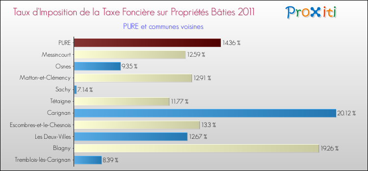 A noter : la valeur moyenne de ce taux de taxe foncière sur le bâti dans les communes françaises similaires à Pure était de 13.42 %, en 2011.