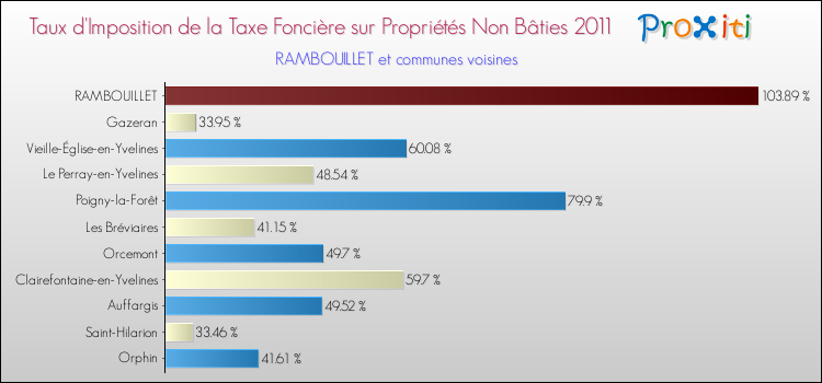 En 2011, le taux de la taxe foncière sur le non bâti vôté par le conseil municipal de Rambouillet était de : 103.89 %.
