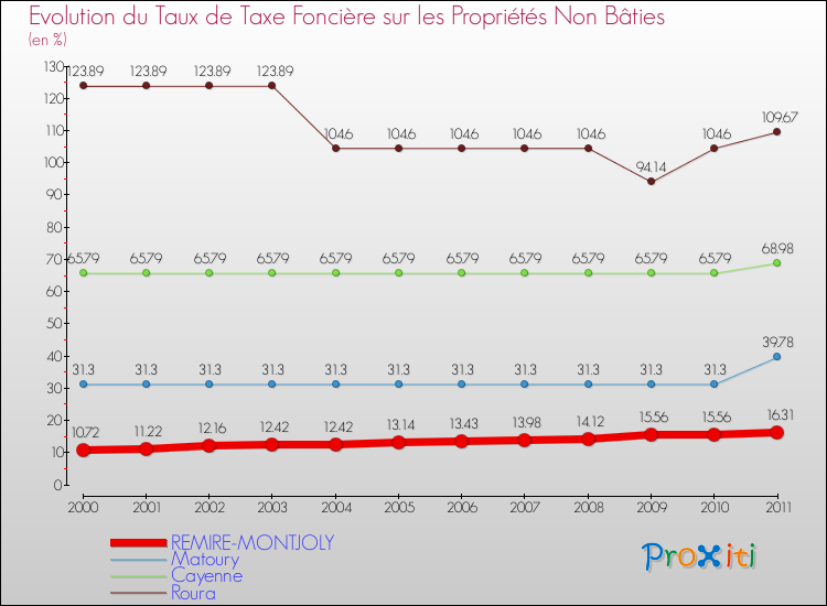 Pendant la même période, les communes françaises similaires à Remire-Montjoly, ont vu leur taux de taxe foncière sur le non bâti augmenter de 1 % en moyenne entre 2000 et 2011.
