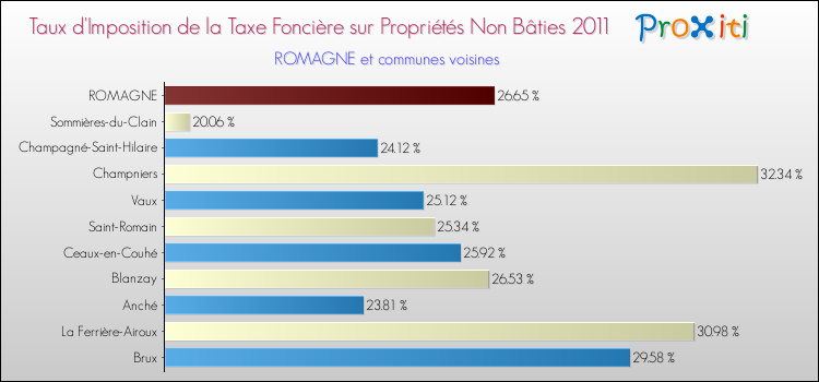 En 2011, le taux de la taxe foncière sur le non bâti vôté par le conseil municipal de Romagne était de : 26.65 %.