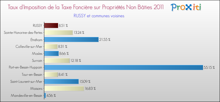 En 2011, le taux de la taxe foncière sur le non bâti vôté par le conseil municipal de Russy était de : 8.51 %.