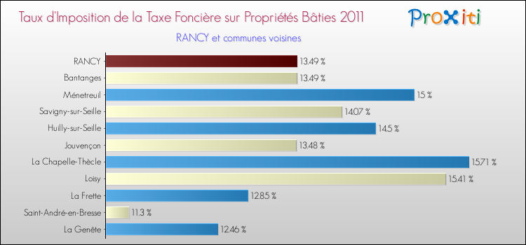 A noter : la valeur moyenne de ce taux de taxe foncière sur le bâti dans les communes françaises similaires à Rancy était de 13.42 %, en 2011.