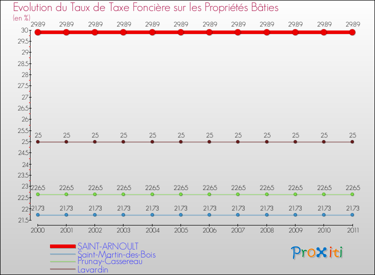 En 2011, le taux de la taxe foncière sur le bâti vôté par le conseil municipal de Saint-Arnoult était de : 29.89 %.