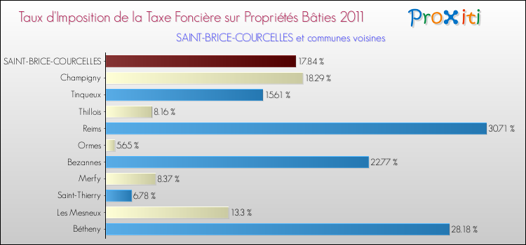 A noter : la valeur moyenne de ce taux de taxe foncière sur le bâti dans les communes françaises similaires à Saint-Brice-Courcelles était de 17.74 %, en 2011.