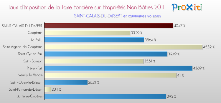 En 2011, le taux de la taxe foncière sur le non bâti vôté par le conseil municipal de Saint-Calais-du-Désert était de : 40.47 %.