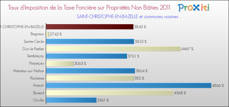 Vous trouverez ci-dessous des graphiques qui vous permettent de situer le taux de la taxe foncière sur le non bâti de Saint-Christophe-en-Bazelle par rapport aux communes voisines.