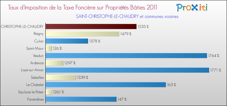 A noter : la valeur moyenne de ce taux de taxe foncière sur le bâti dans les communes françaises similaires à Saint-Christophe-le-Chaudry était de 10.11 %, en 2011.