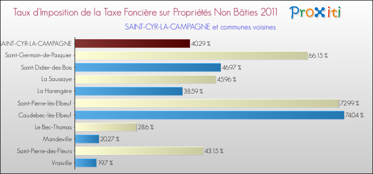 En 2011, le taux de la taxe foncière sur le non bâti vôté par le conseil municipal de Saint-Cyr-la-Campagne était de : 40.29 %.