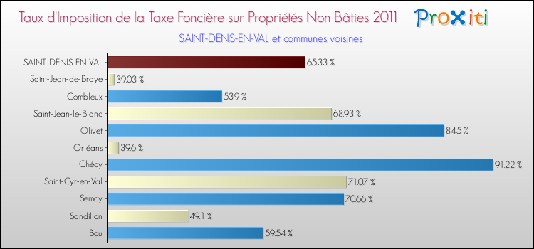 A noter : la valeur moyenne de ce taux de taxe foncière sur le non bâti dans les communes françaises similaires à Saint-Denis-en-Val était de 58.01 %, en 2011.