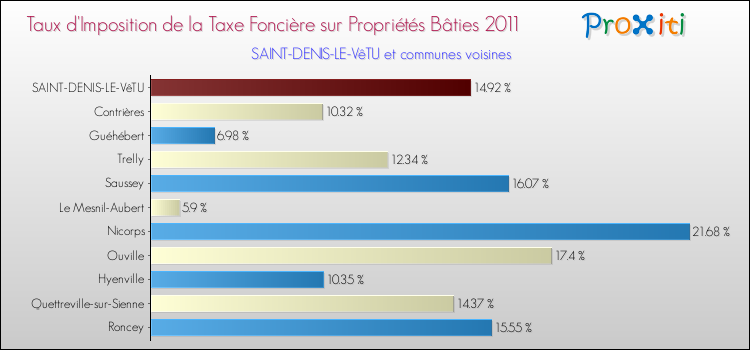 A Saint-Denis-le-Vêtu, le taux de la taxe foncière sur le bâti est donc plus élevé de 11.18 % que pour des communes similaires.