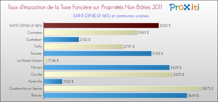 A noter : la valeur moyenne de ce taux de taxe foncière sur le non bâti dans les communes françaises similaires à Saint-Denis-le-Vêtu était de 35.75 %, en 2011.