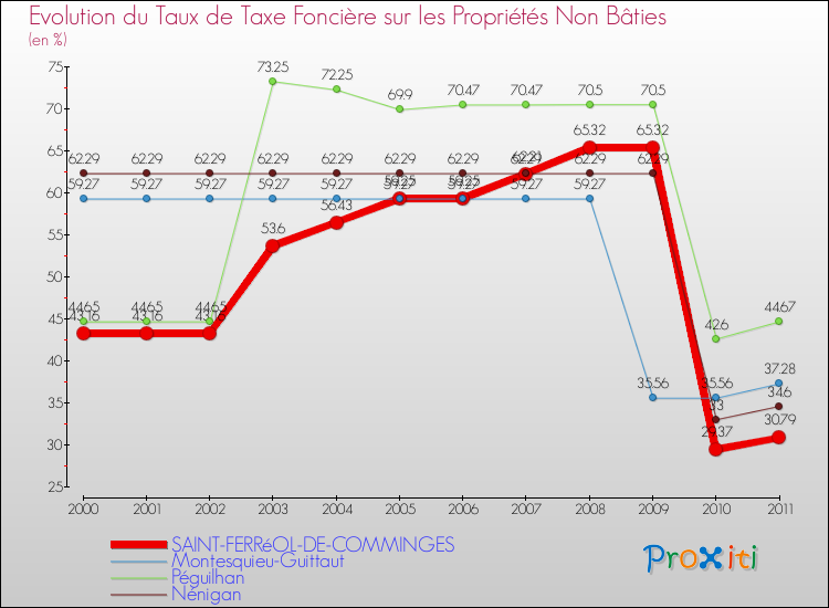A Saint-Ferréol-de-Comminges, le taux de taxe foncière sur le non bâti a donc baissé de 28.66 % entre 2000 et 2011.