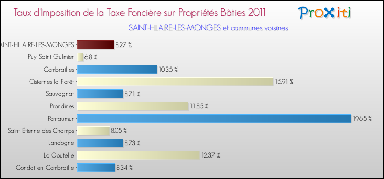 A noter : la valeur moyenne de ce taux de taxe foncière sur le bâti dans les communes françaises similaires à Saint-Hilaire-les-Monges était de 13.59 %, en 2011.