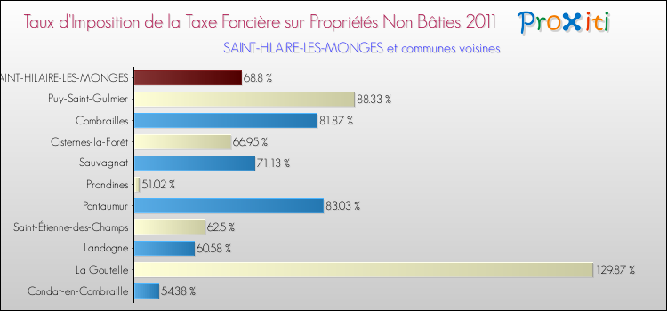 A noter : la valeur moyenne de ce taux de taxe foncière sur le non bâti dans les communes françaises similaires à Saint-Hilaire-les-Monges était de 38.55 %, en 2011.