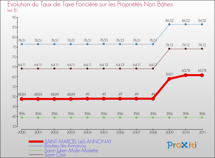 A Saint-Marcel-lès-Annonay, le taux de taxe foncière sur le non bâti a donc augmenté de 24.32 % entre 2000 et 2011.