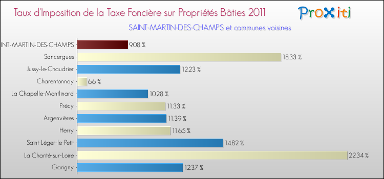 A noter : la valeur moyenne de ce taux de taxe foncière sur le bâti dans les communes françaises similaires à Saint-Martin-des-Champs était de 12.57 %, en 2011.