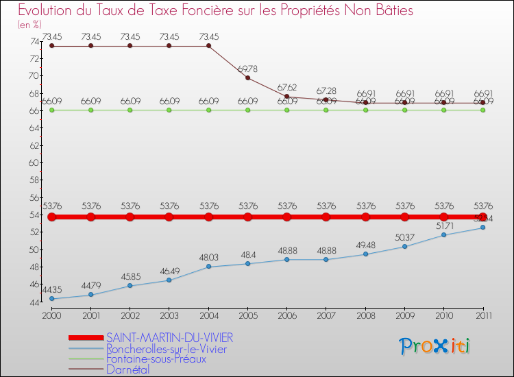 A Saint-Martin-du-Vivier, le taux de taxe foncière sur le non bâti a donc augmenté de 0 % entre 2000 et 2011.