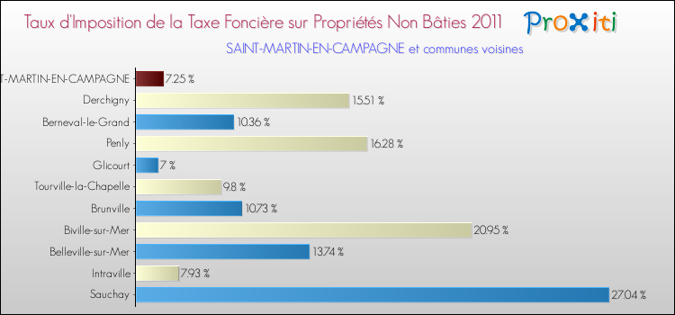 A Saint-Martin-en-Campagne, le taux de taxe foncière sur le non bâti a donc augmenté de 51.67 % entre 2000 et 2011.