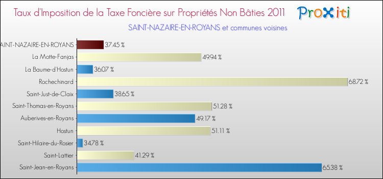 Pendant la même période, les communes françaises similaires à Saint-Nazaire-en-Royans, ont vu leur taux de taxe foncière sur le non bâti augmenter de 27.19 % en moyenne entre 2000 et 2011.