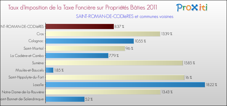 A noter : la valeur moyenne de ce taux de taxe foncière sur le bâti dans les communes françaises similaires à Saint-Roman-de-Codières était de 13.59 %, en 2011.