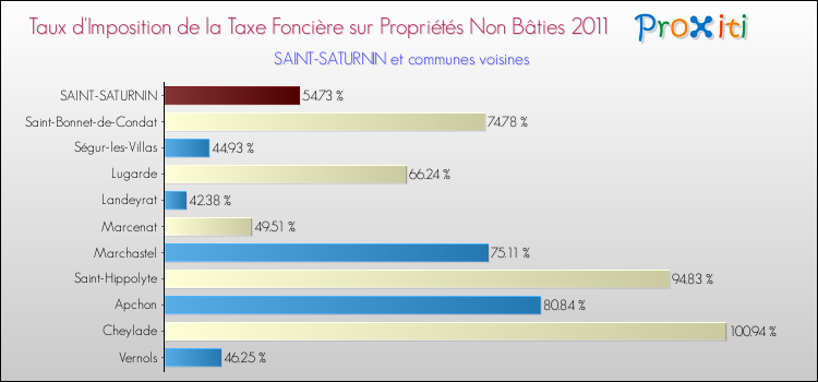 A Saint-Saturnin, le taux de la taxe foncière sur le non bâti est donc plus élevé de 114.38 % que pour des communes similaires.