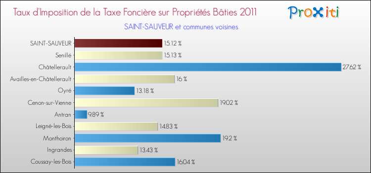 A noter : la valeur moyenne de ce taux de taxe foncière sur le bâti dans les communes françaises similaires à Saint-Sauveur était de 15.82 %, en 2011.