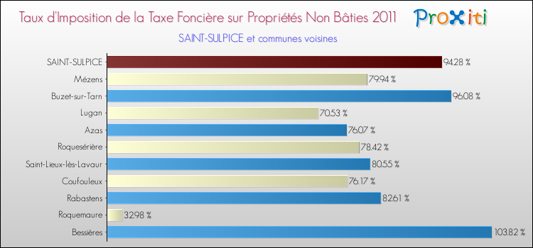 Pendant la même période, les communes françaises similaires à Saint-Sulpice, ont vu leur taux de taxe foncière sur le non bâti augmenter de 23.61 % en moyenne entre 2000 et 2011.