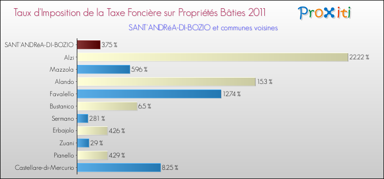 A noter : la valeur moyenne de ce taux de taxe foncière sur le bâti dans les communes françaises similaires à Sant'Andréa-di-Bozio était de 12.55 %, en 2011.