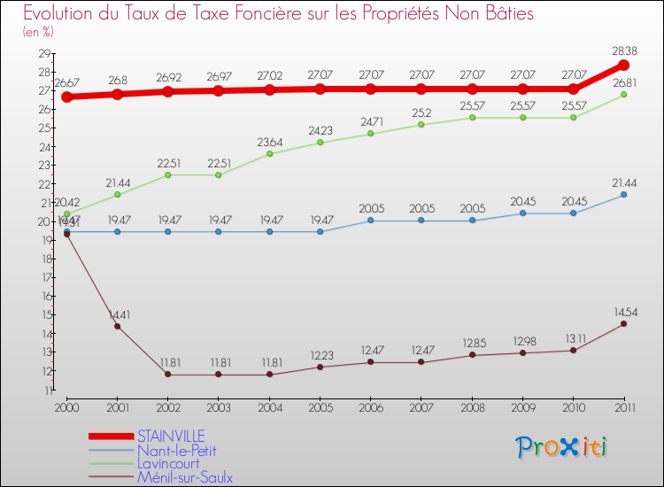A Stainville, le taux de taxe foncière sur le non bâti a donc augmenté de 6.41 % entre 2000 et 2011.