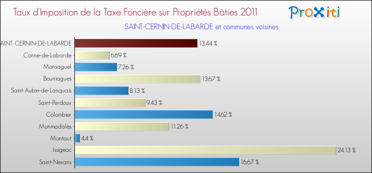 Comparaison des taux d'imposition de la taxe foncière sur le bati 2011 pour SAINT-CERNIN-DE-LABARDE et les communes voisines