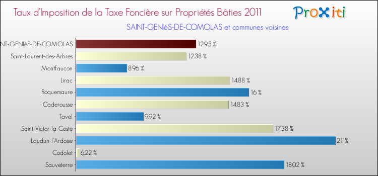 A noter : la valeur moyenne de ce taux de taxe foncière sur le bâti dans les communes françaises similaires à Saint-Geniès-de-Comolas était de 15.82 %, en 2011.