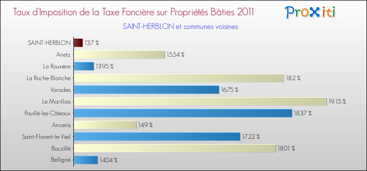 A noter : la valeur moyenne de ce taux de taxe foncière sur le bâti dans les communes françaises similaires à Saint-Herblon était de 17.74 %, en 2011.