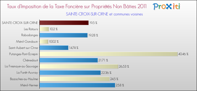 A noter : la valeur moyenne de ce taux de taxe foncière sur le non bâti dans les communes françaises similaires à Sainte-Croix-sur-Orne était de 25.53 %, en 2011.