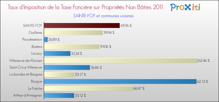 En 2011, le taux de la taxe foncière sur le non bâti vôté par le conseil municipal de Sainte-Foy était de : 43.96 %.
