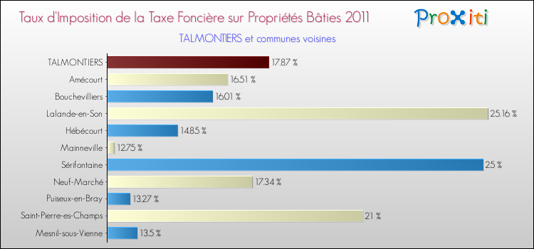 A noter : la valeur moyenne de ce taux de taxe foncière sur le bâti dans les communes françaises similaires à Talmontiers était de 13.42 %, en 2011.