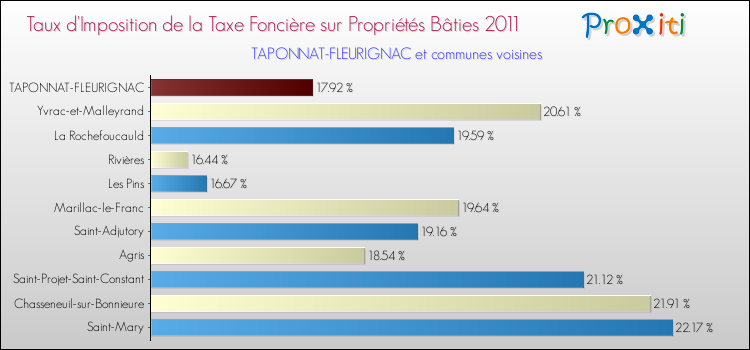 A noter : la valeur moyenne de ce taux de taxe foncière sur le bâti dans les communes françaises similaires à Taponnat-Fleurignac était de 15.82 %, en 2011.