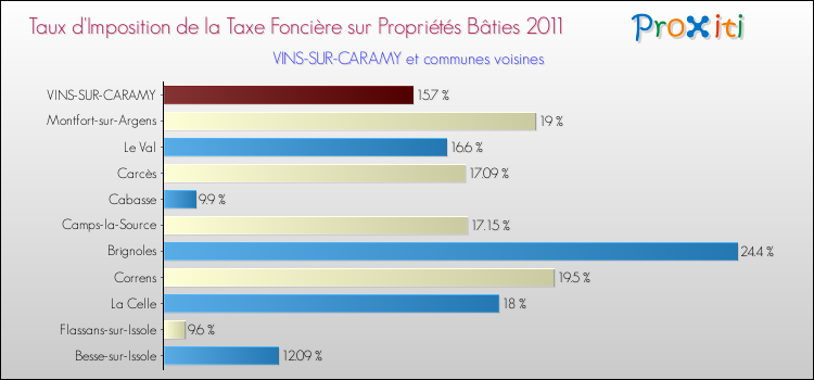 A noter : la valeur moyenne de ce taux de taxe foncière sur le bâti dans les communes françaises similaires à Vins-sur-Caramy était de 15.82 %, en 2011.