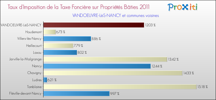 A noter : la valeur moyenne de ce taux de taxe foncière sur le bâti dans les communes françaises similaires à Vandoeuvre-lès-Nancy était de 23.61 %, en 2011.
