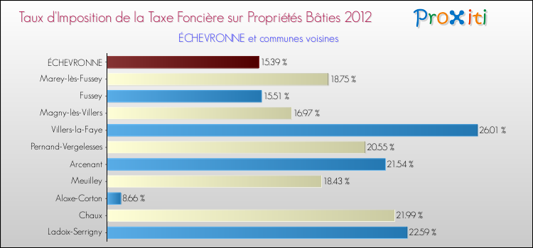 A noter : la valeur moyenne de ce taux de taxe foncière sur le bâti dans les communes françaises similaires à Échevronne était de 14.72 %, en 2012.