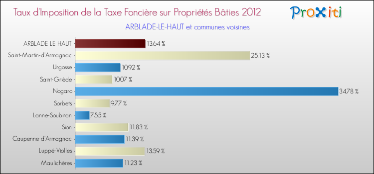A noter : la valeur moyenne de ce taux de taxe foncière sur le bâti dans les communes françaises similaires à Arblade-le-Haut était de 12.59 %, en 2012.