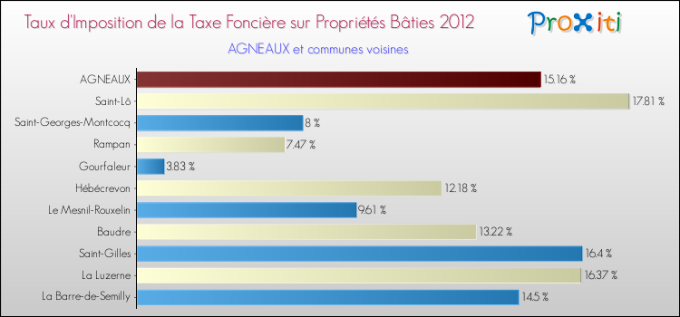 A noter : la valeur moyenne de ce taux de taxe foncière sur le bâti dans les communes françaises similaires à Agneaux était de 19.24 %, en 2012.