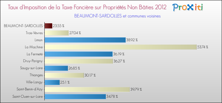 En 2012, le taux de la taxe foncière sur le non bâti vôté par le conseil municipal de Beaumont-Sardolles était de : 23.55 %.
