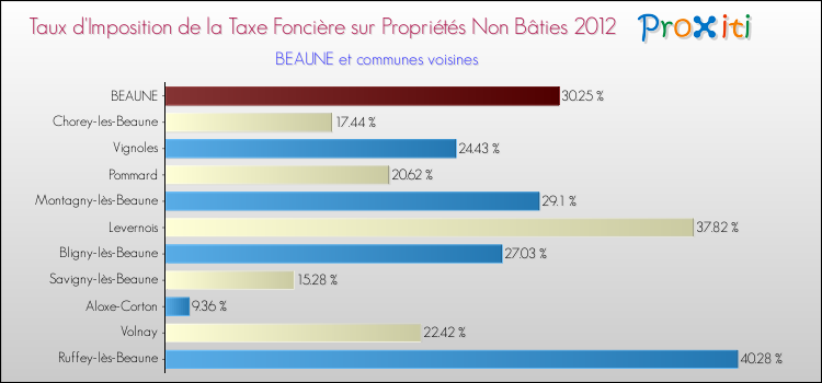 En 2012, le taux de la taxe foncière sur le non bâti vôté par le conseil municipal de Beaune était de : 30.25 %.