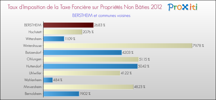 En 2012, le taux de la taxe foncière sur le non bâti vôté par le conseil municipal de Berstheim était de : 26.83 %.