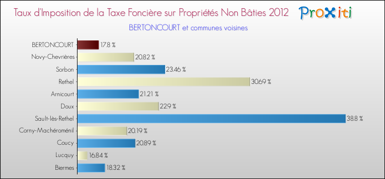 En 2012, le taux de la taxe foncière sur le non bâti vôté par le conseil municipal de Bertoncourt était de : 17.8 %.