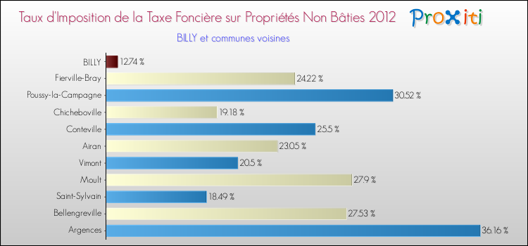 En 2012, le taux de la taxe foncière sur le non bâti vôté par le conseil municipal de Billy était de : 12.74 %.