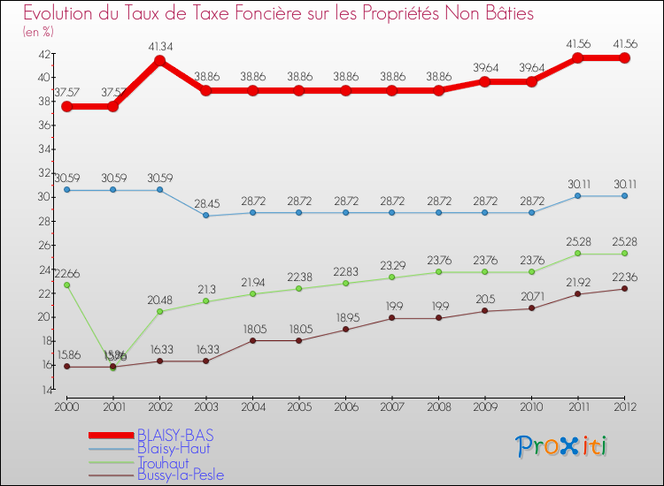 A noter : la valeur moyenne de ce taux de taxe foncière sur le non bâti dans les communes françaises similaires à Blaisy-Bas était de 35.89 %, en 2012.